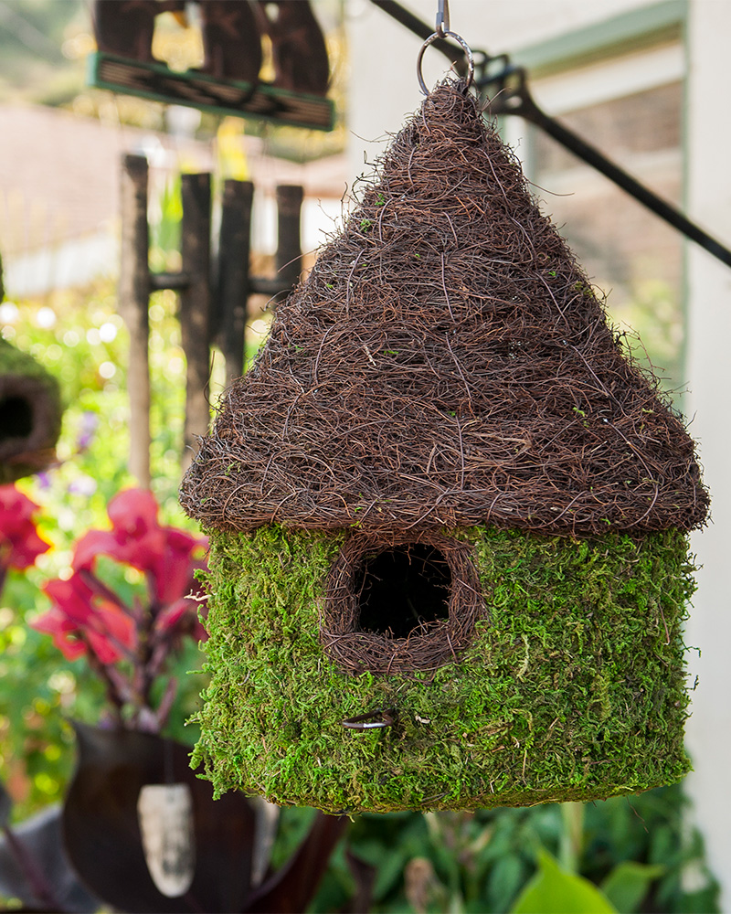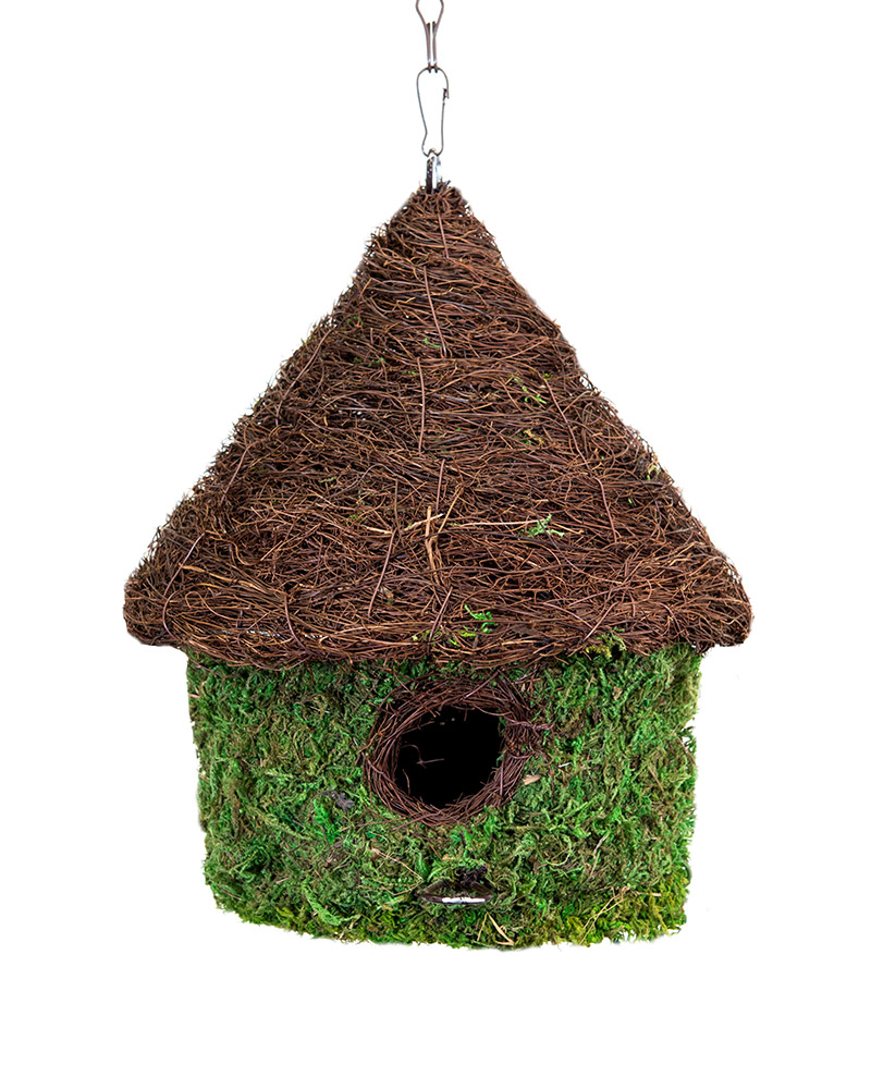 SuperMoss Woven Birdhouses are made the same way as our MossWeave Baskets, and are extremely durable and meant for outdoor and garden use. The nests maintain their shape through the elements and will not deteriorate for multiple years. Each house comes with an elegant chain to easily hang from a tree branch or hook.Care Instructions: