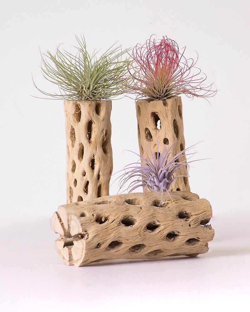 Cholla Wood is a fallen, desert cactus skeleton! Cholla Wood is a classic wood decoration used to plant succulents and air plants. Furthermore, cholla wood is an ideal accent for terrarium décor. In addition, the porous and fibrous texture is good for aquariums as they attract shrimps and aquatic microfauna. They are naturally good anchors for growing aquatic plants and look very intriguing underwater.