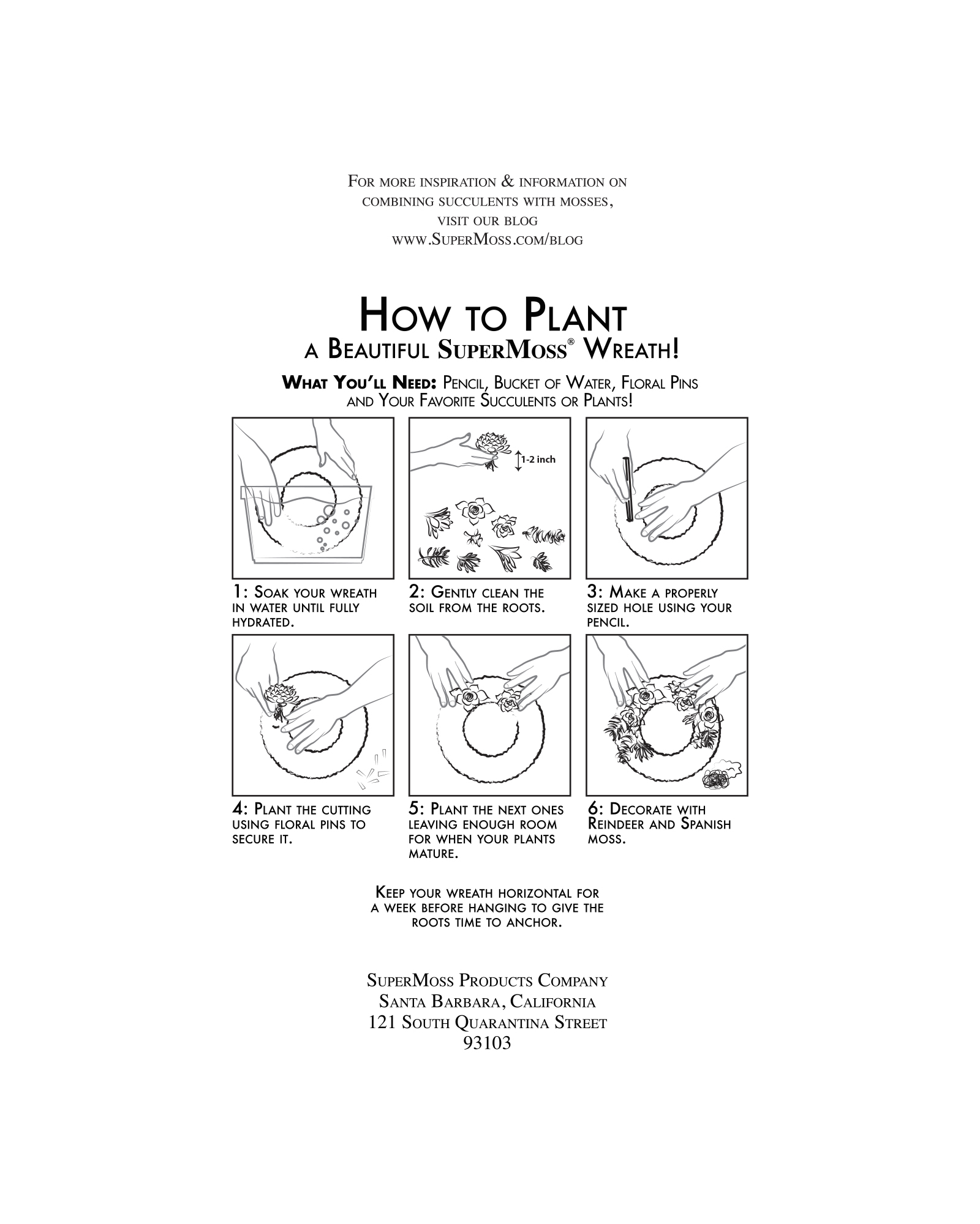 SuperMoss Living Wreaths are everything you need to start your next creative project in the garden or indoors. Our wreaths are ideal for making living wreaths and succulent wreaths because they are stuffed with our quality Blonde Sphagnum Moss. You can plant directly into the sphagnum moss wreath without using any soil because the moss is highly absorbent and retains all the moisture, air, and nutrients your plants need to grow healthily. Our wreaths are durable and will last multiple seasons. Each wreath comes with planting instructions and a care sheet. For indoor wreaths, try decorating with dried flowers and natural elements by simply poking the stems directly into the moss.Details
