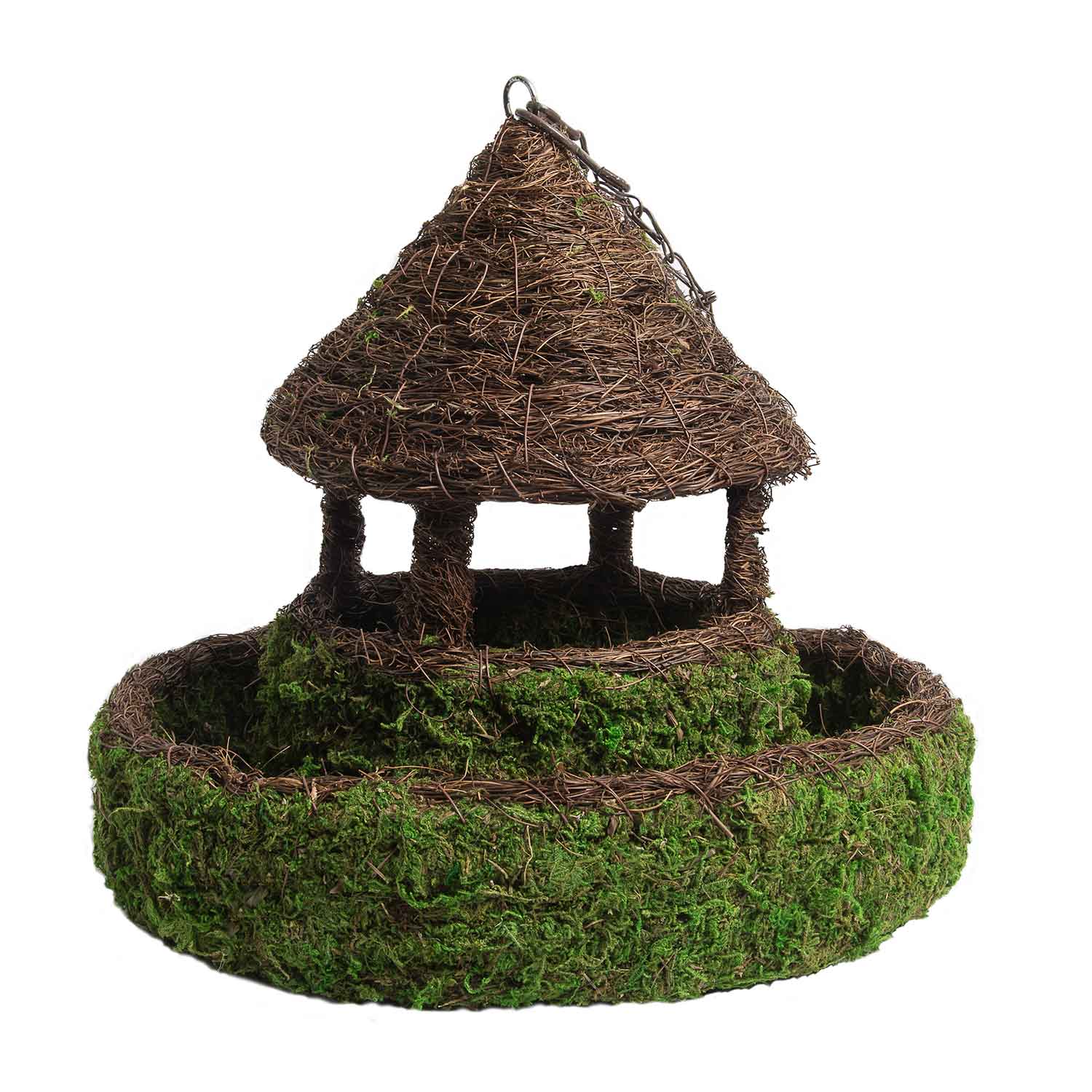 SuperMoss Woven Birdhouses are made the same way as our MossWeave Baskets, and are extremely durable and meant for outdoor and garden use. The nests maintain their shape through the elements and will not deteriorate for multiple years. Each house comes with an elegant chain to easily hang from a tree branch or hook.