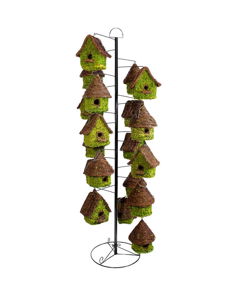 Retail display Pole, 74 inches in height, with 11 adjustable hooks to display SuperMoss birdhouses.