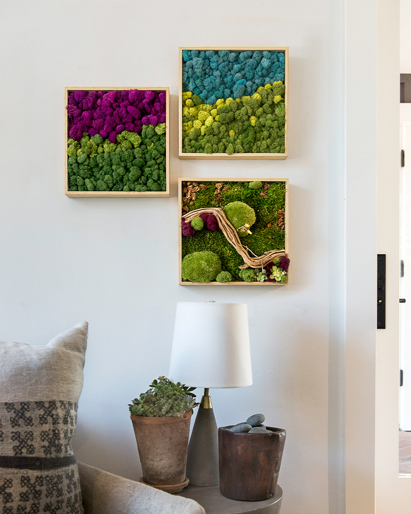 Create your own Moss Wall starting with our Pine Wood Frames. Add a variety of moss and other natural elements to create your own biophilic design. Green Walls and Moss Frames are excellent examples of biophilic design, which can reduce stress, enhance creativity, clarify thought, and improve our overall well-being at home and at work.Details